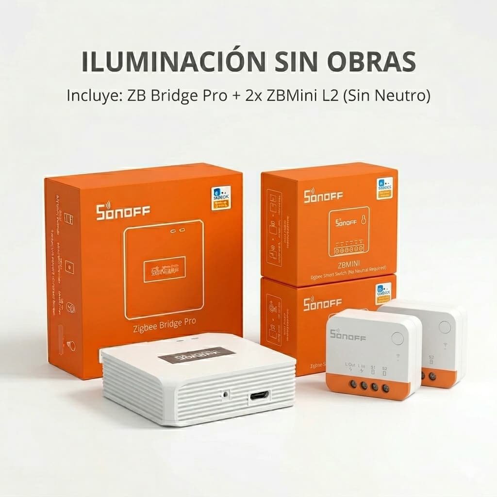 SONOFF ZB Bridge Pro (El Cerebro): El Hub que coordina toda la red Zigbee de tu hogar. Al no depender directamente del WiFi para comunicarse con los módulos, garantiza que tus luces respondan al instante, incluso si el internet de la zona fluctúa.